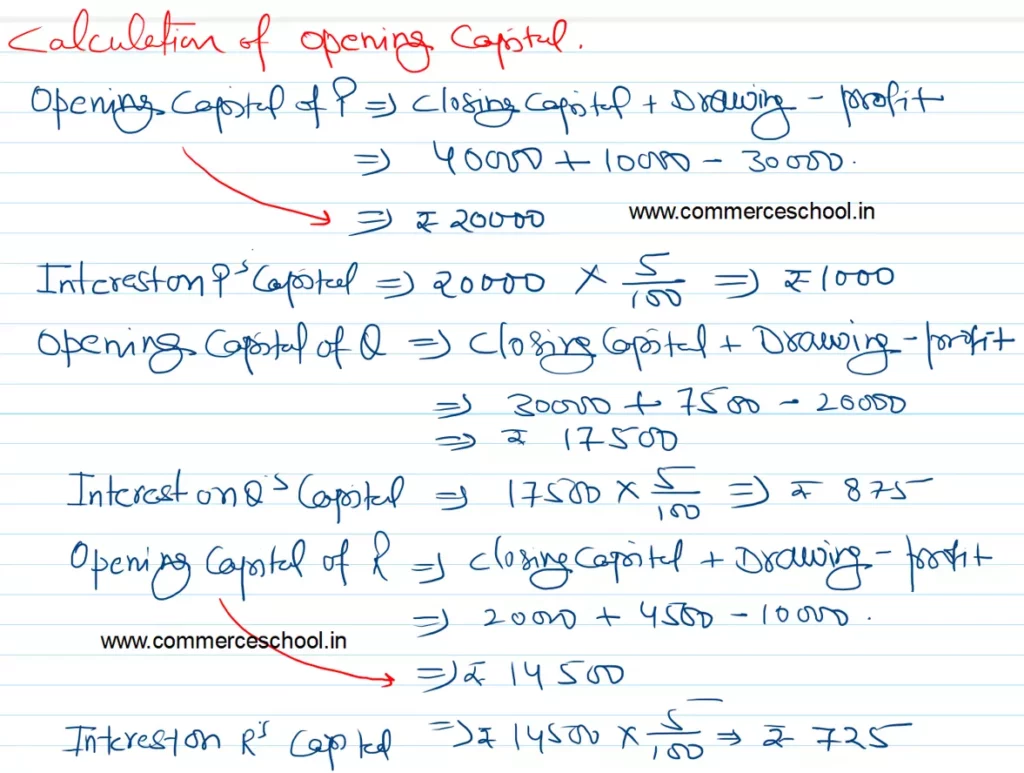 [Hint: Opening Capital: P – ₹ 20,000; Q – ₹ 17,500; R – ₹ 14,500.]