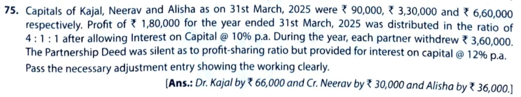 Solution of Question number 75 of the Fundamentals of partnership firm chapter TS Grewal Book CBSE 2025-26 Edition