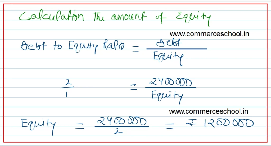 Debt to Equity Ratio 2 : 1; Long-term Borrowings ₹ 18,00,000; Long-term Provision ₹ 6,00,000; Reserves and Surplus ₹ 2,00,000.
