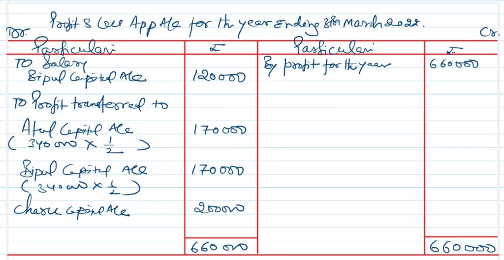 Atul, Bipul, and Charu are partners sharing profits equally. Bipul is guaranteed a minimum profit of ₹ 2,00,000 per annum. Salary is payable to Bipul of ₹ 10,000 per month. Net Profit for the year ended 31st March 2022 is ₹ 6,60,000.
