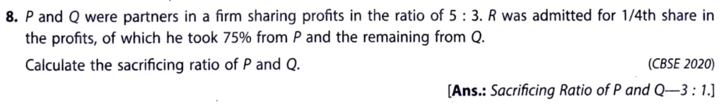 [Ans.: Sacrificing Ratio of P and Q – 3 : 1.]