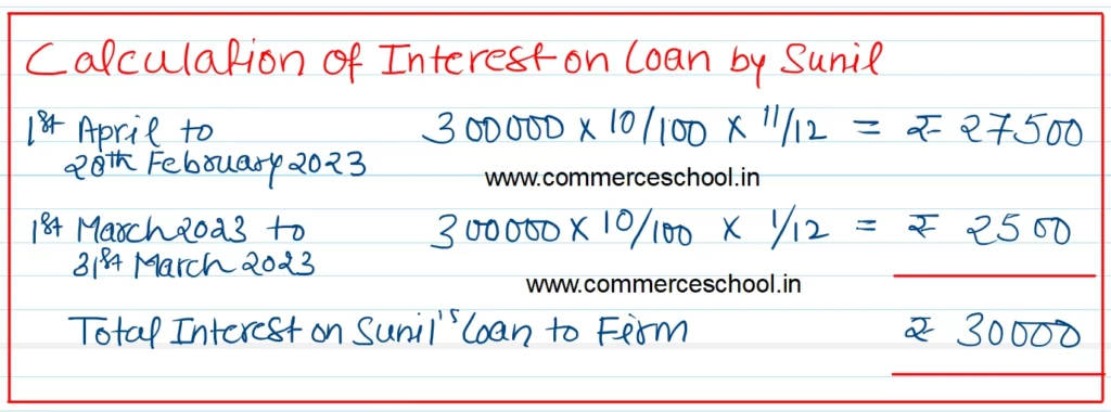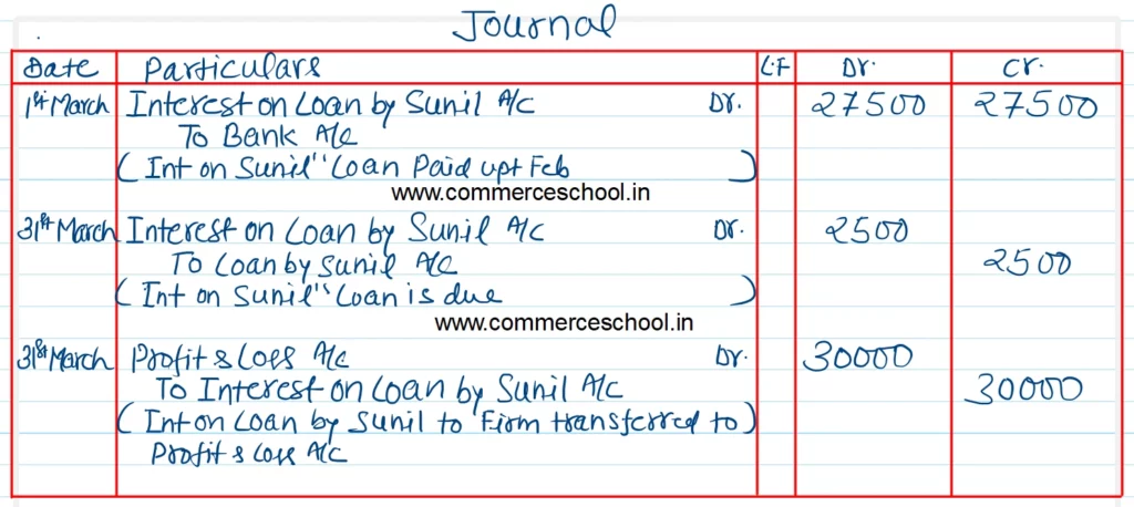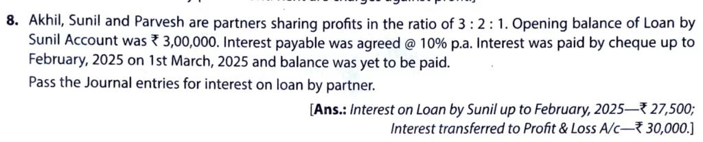 [Ans: Interest on Loan by Sunil up to February 2025 – ₹ 27,500; Interest transferred to Profit and Loss a/c – ₹ 30,000.]