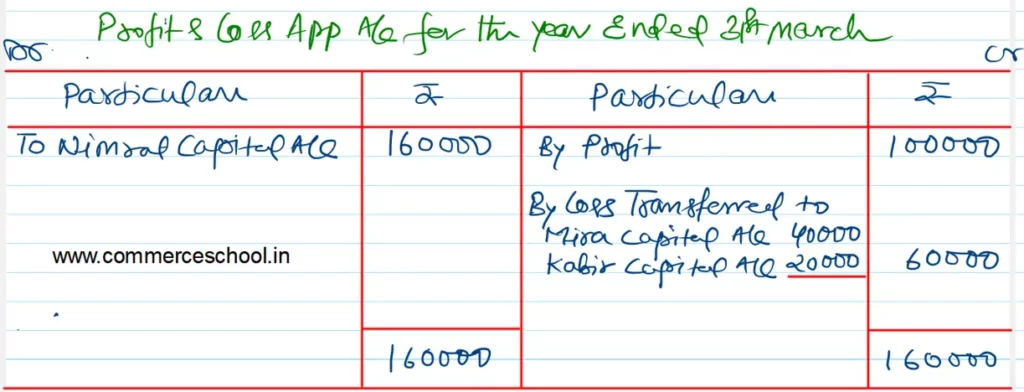 [Ans: Nimrat will get ₹ 1,60,000 (Guaranteed Profit); Loss of ₹ 60,000 will be shared by Maira and Kabir in 2 : 1 ratio.]