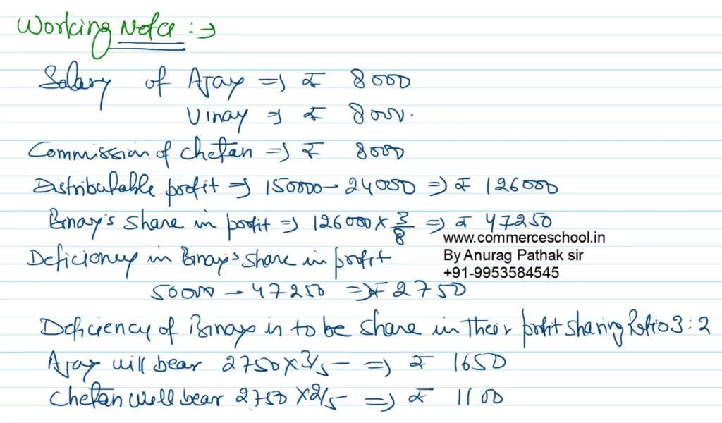 Ajay, Binay, and Chetan were partners sharing profits in the ratio of 3:3:2. The Partnership Deed Provided for the following: