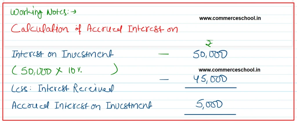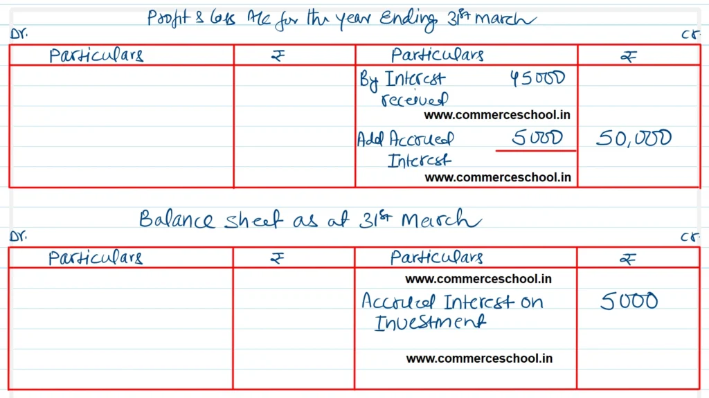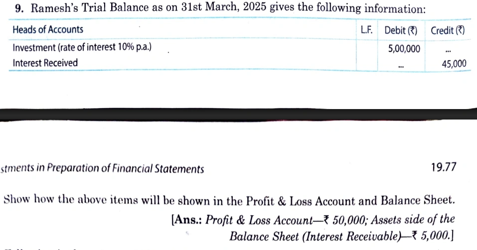 [Ans.: Profit & Loss Account – ₹ 50,000; Assets side of the Balance Sheet (Interst Receivable) – ₹ 5,000.]