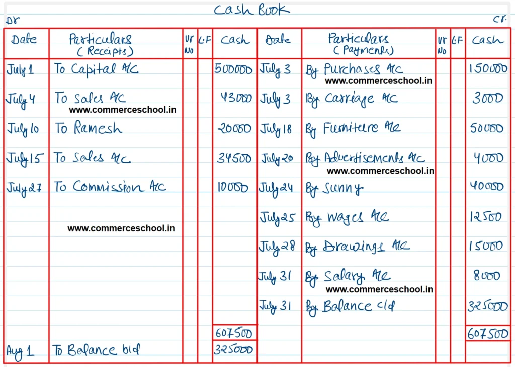 (i) On 6th July, ‘sold goods to Ramesh’ is a credit side. It will not be recorded in Cash Book.