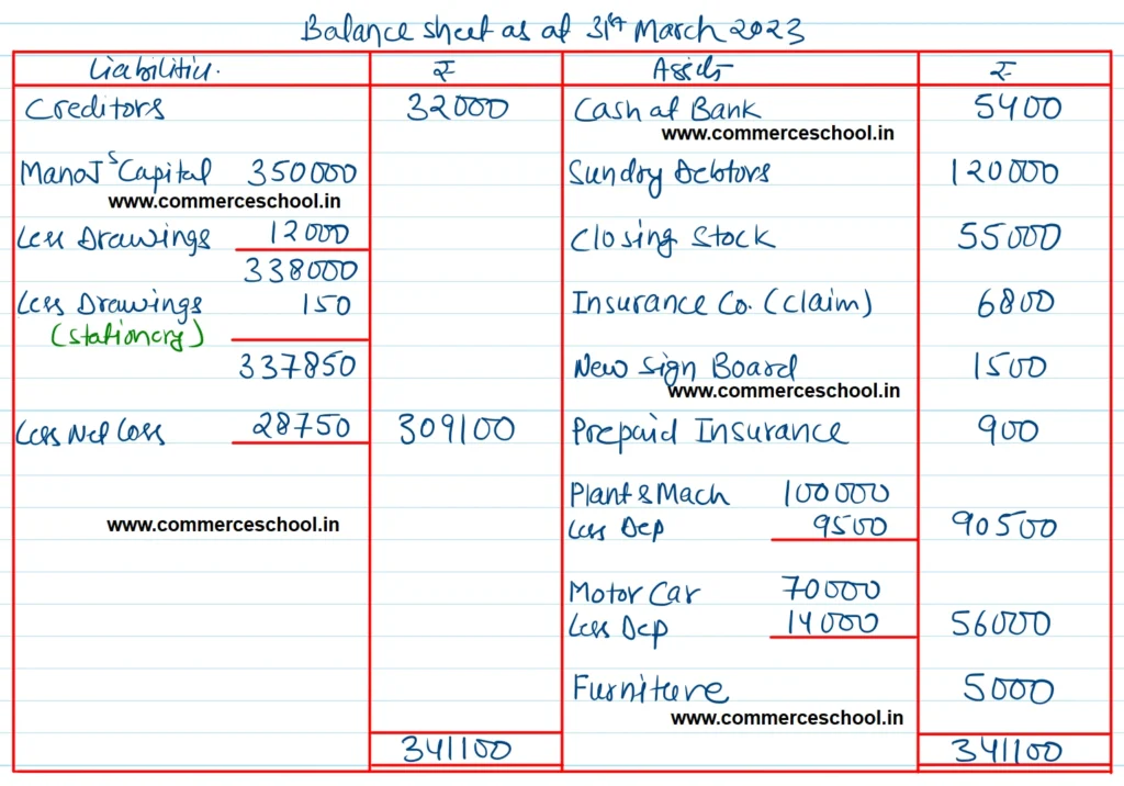(4) A new Signboard costing ₹ 1,500 is included in Advertising.