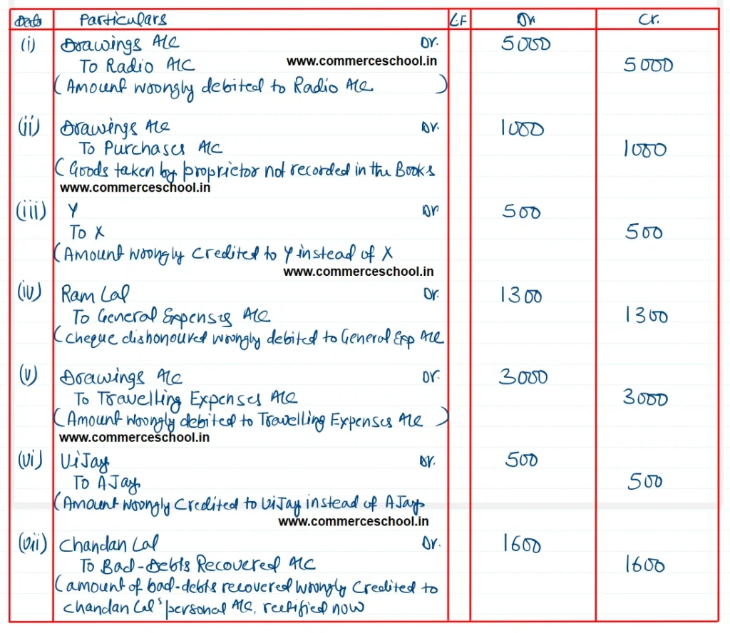 (i) ₹ 5,000, being the cost of a Radio purchased for the personal use of the proprietor has been debited to Radio account in the ledger.