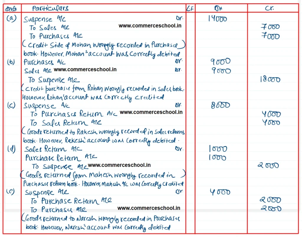 (a) Credit sales to Mohan ₹ 7,000 were recorded in Purchase Book. However, Mohan’s Account was correctly debited.