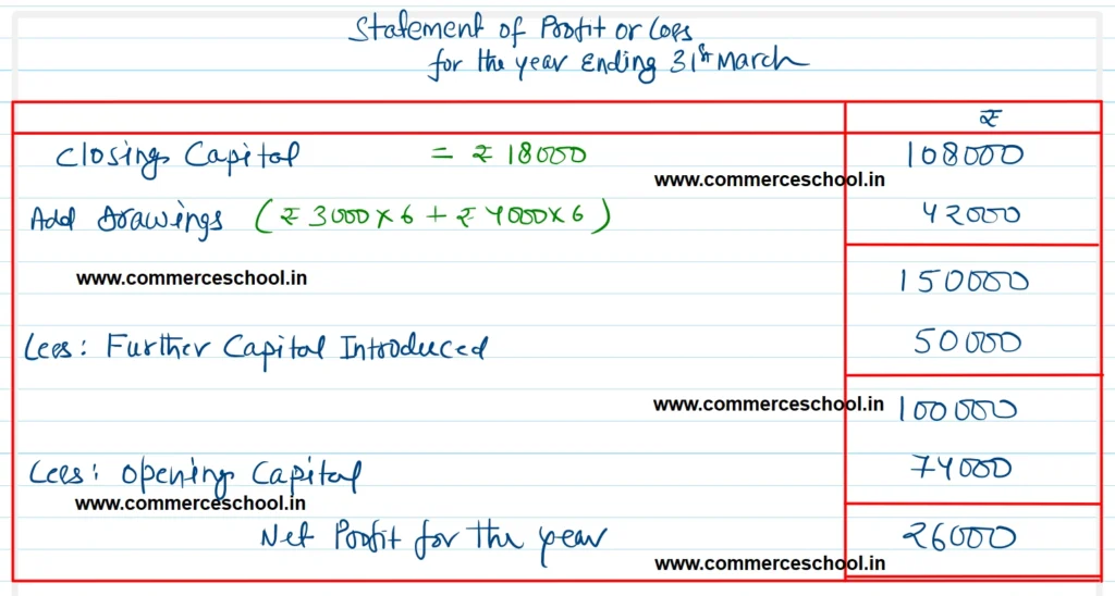 [Ans. Opening Capital ₹ 74,000; Closing Capital ₹ 1,08,000; Profit ₹ 26,000.]