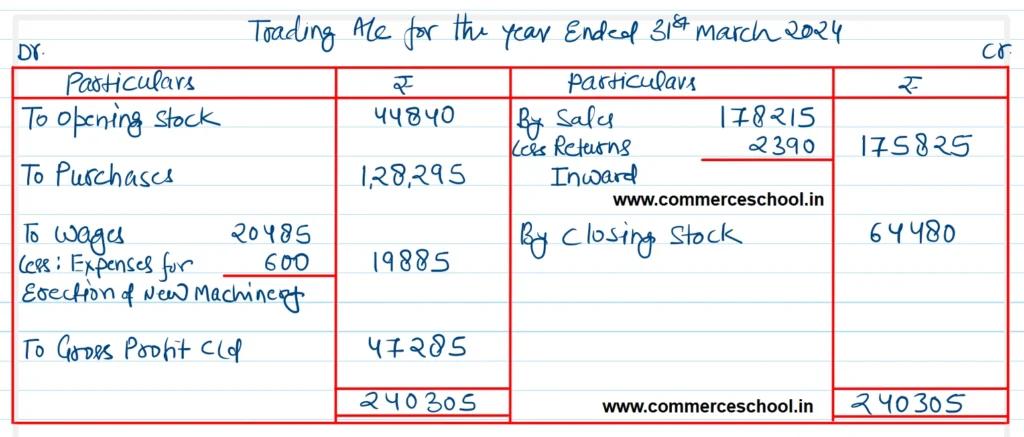 (iv) Wages include ₹ 600 for erection of new machinery.
