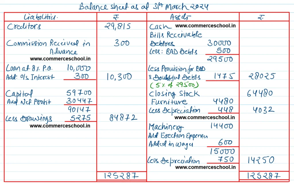 (vi) Commission includes ₹ 300 being Commission received in advance.