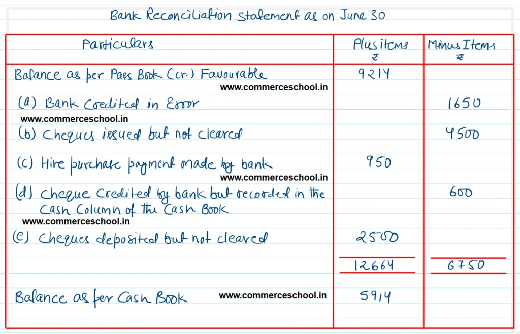 (b) Certain cheques, valued at ₹ 5,400 issued before June 30, were not cleared.