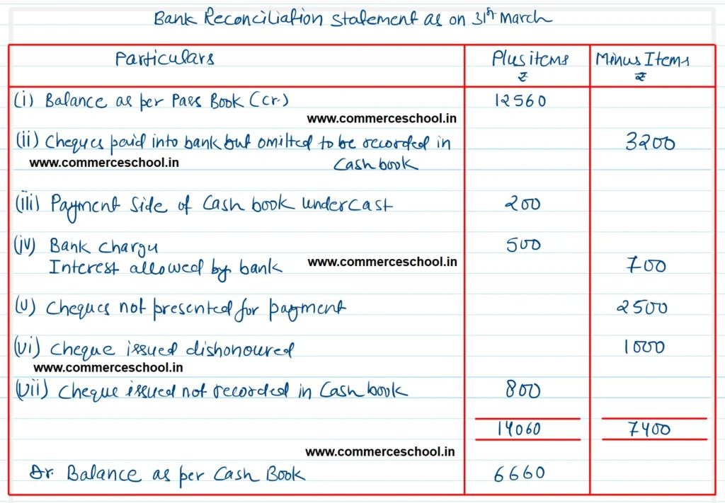 (i) Pass book showed a credit balance of ₹ 12,560.