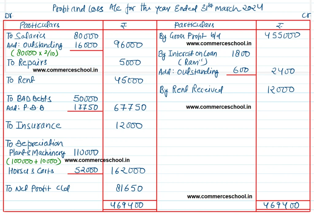(2) Depreciate Plant and Machinery by 10% p.a. and Horses and Carts by 20% p.a.