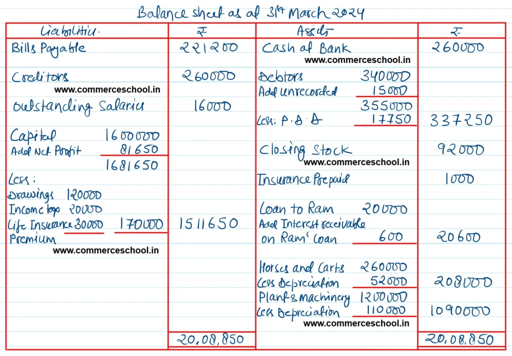 | Horses and Carts | 2,60,000 | Sales | 8,20,000 |
