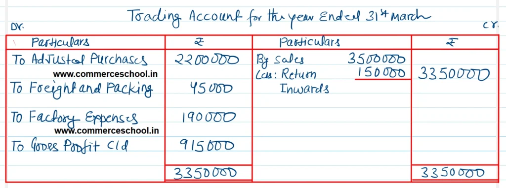 - Closing Stock will not be shown on the credit side of Trading A/c since it has already been adjusted while calculating adjusted purchases