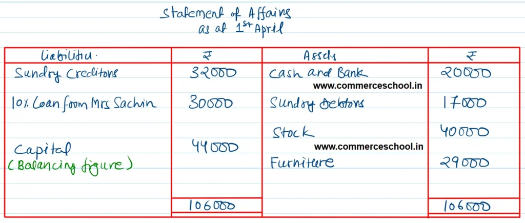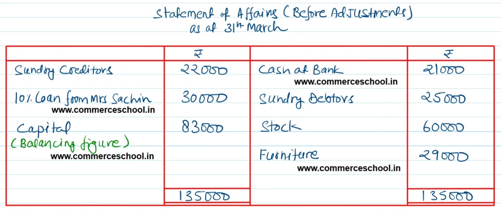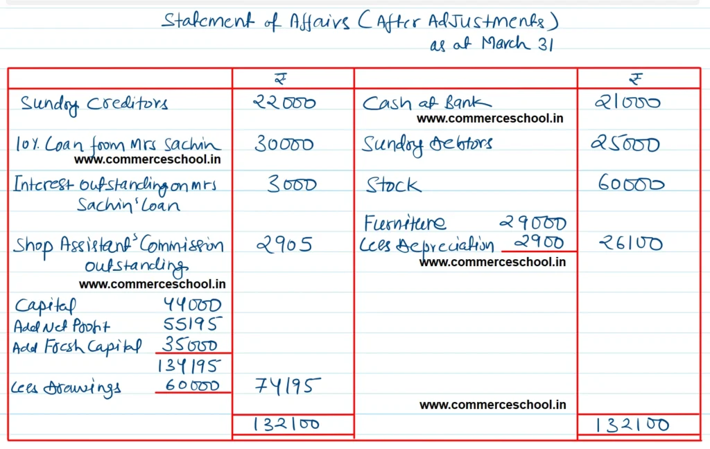 [Ans. Opening Capital ₹ 44,000; closing Capital ₹ 83,000; Net Profit ₹ 55,195; Total of Final Statement of Affairs ₹ 1,32,100.]