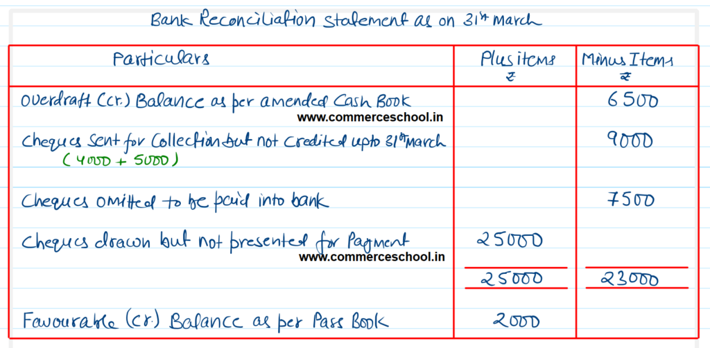 (i) Cheques of ₹ 20,000 were sent to bank for collection; Out of these cheques of ₹ 4,000 and of ₹ 5,000 were credited respectively on 5th April and 6th April respectively and the remaining cheques were credited before 31st March.
