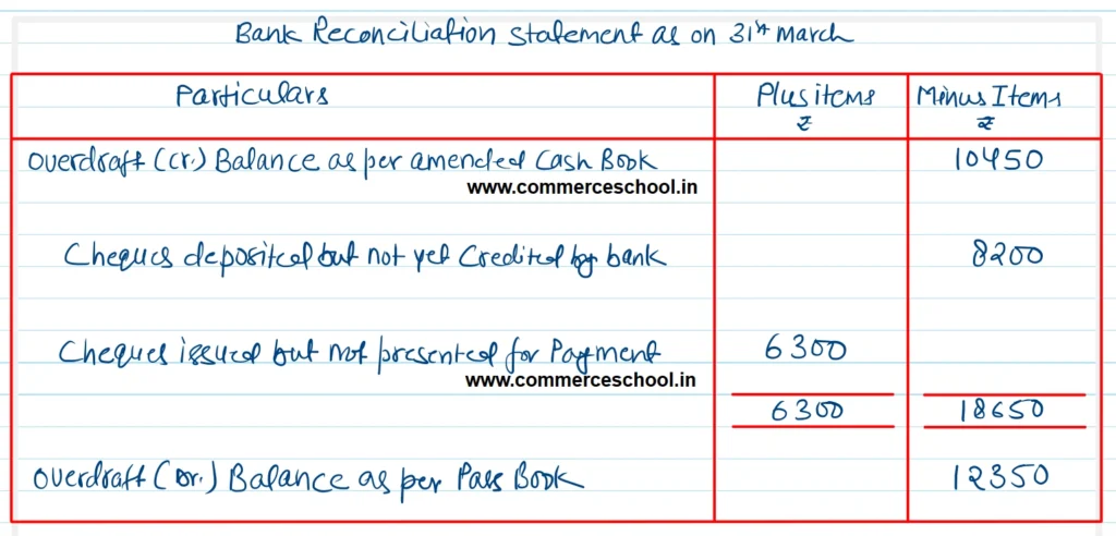 Q. 23. The Cash Book of a merchant showed a overdraft balance of ₹ 15,700 on 31st December 2024. On comparing it with the Pass Book, the following differences were noted: