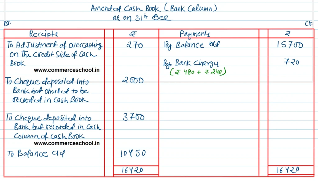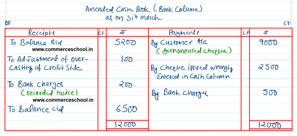 (vii) In the Cash Book, bank charges of ₹ 200 were entered twice while another bank charge of ₹ 500 was not recorded at all.