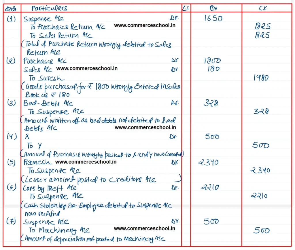 (2) Goods purchased from Suresh ₹ 1,800 recorded in Sales Book as ₹ 180.