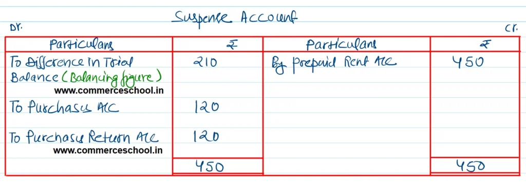 (3) An Item of ₹ 450 relating to prepaid rent account was omitted to be brought forward.