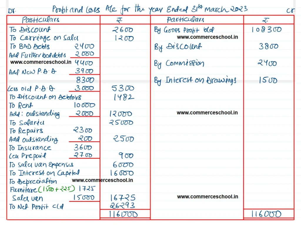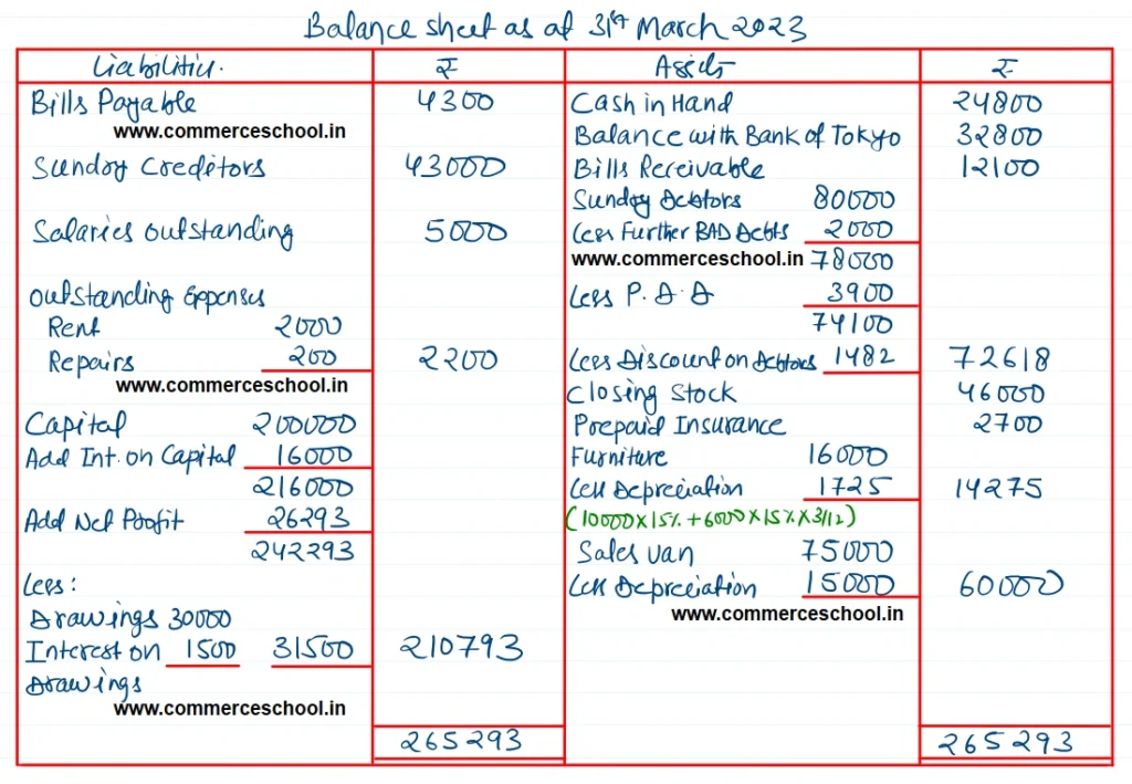 (6) Allow 8% interest on Capital and Charge ₹ 1,500 as interest on Drawings.