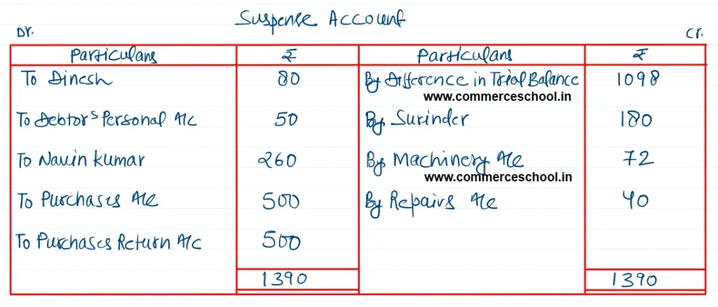 [Ans. Suspense A/c tallies; total of Suspense A/c ₹ 1,390.]