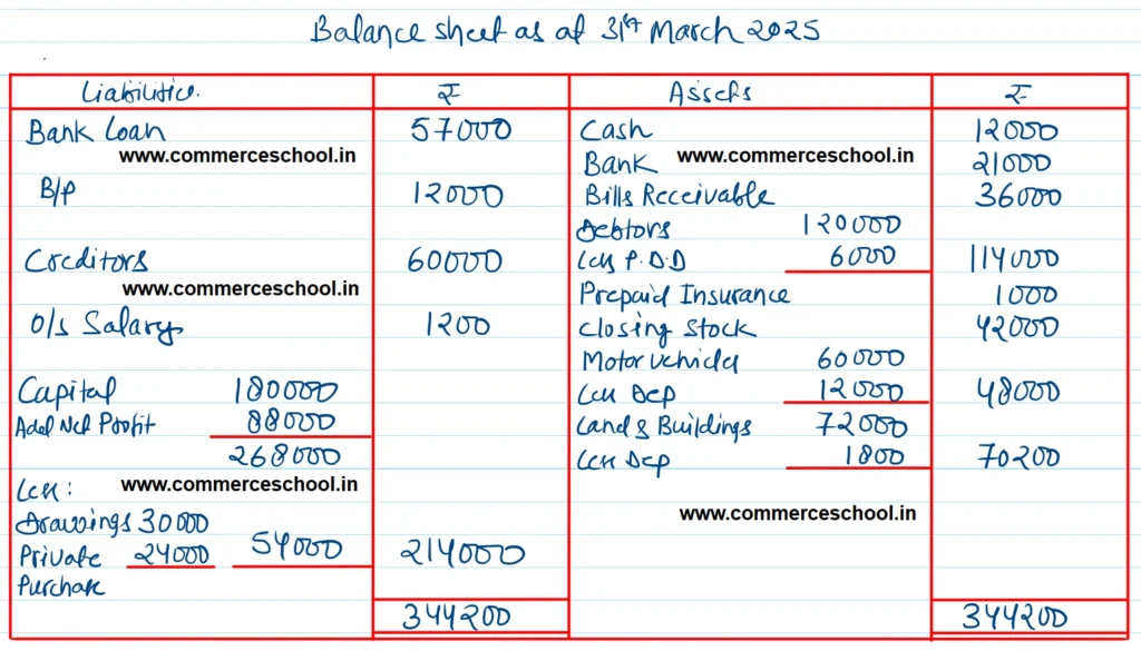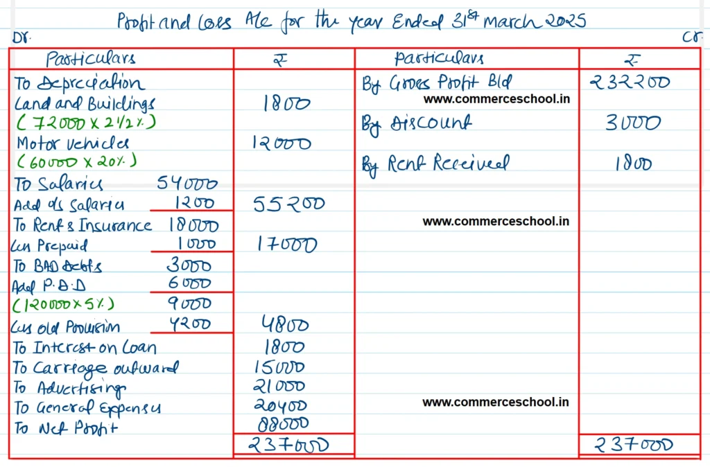 (b) Depreciate Land and Buildings at 21/2% and Motor Vehicles at 20%