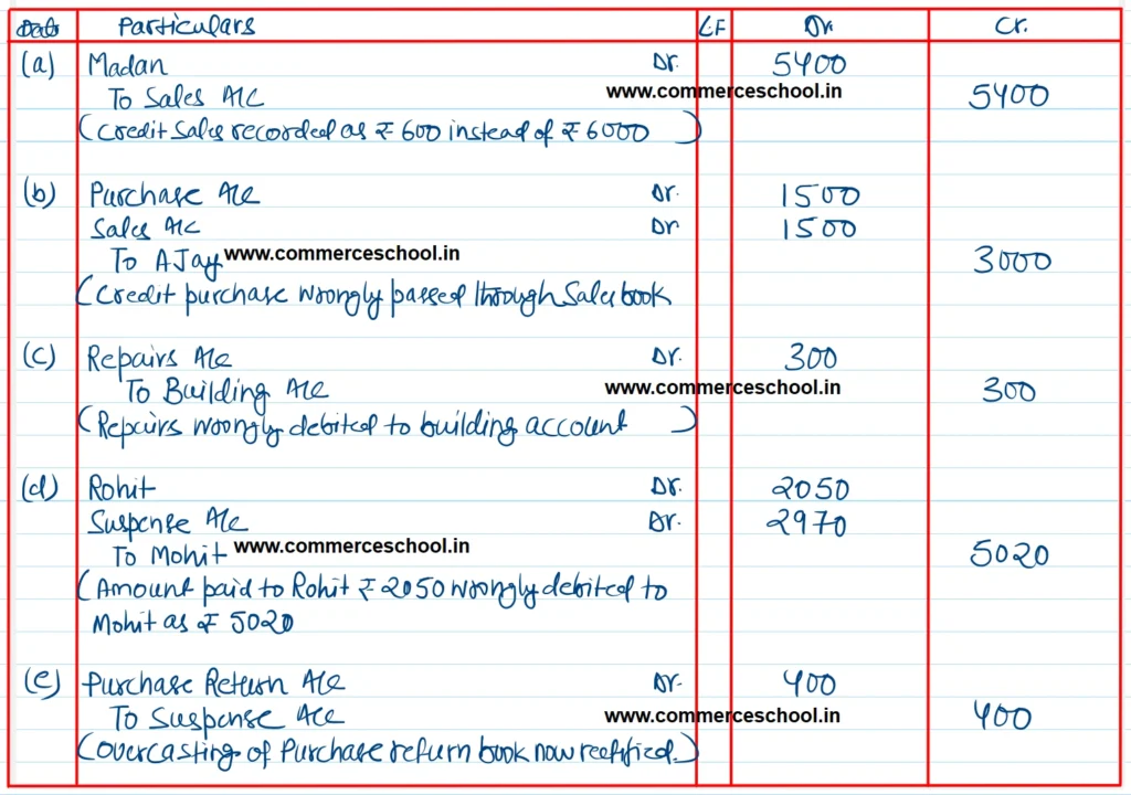 (a) Sale of goods to Madan ₹ 6,000 were entered in the Sales book as ₹ 600.