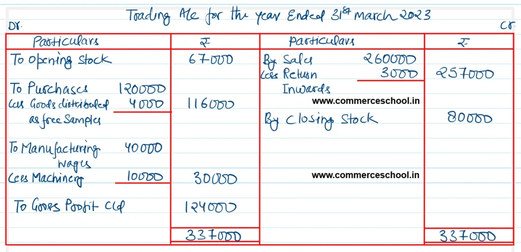 (1) Stock on hand on 31st March, 2023 was ₹ 80,000.
