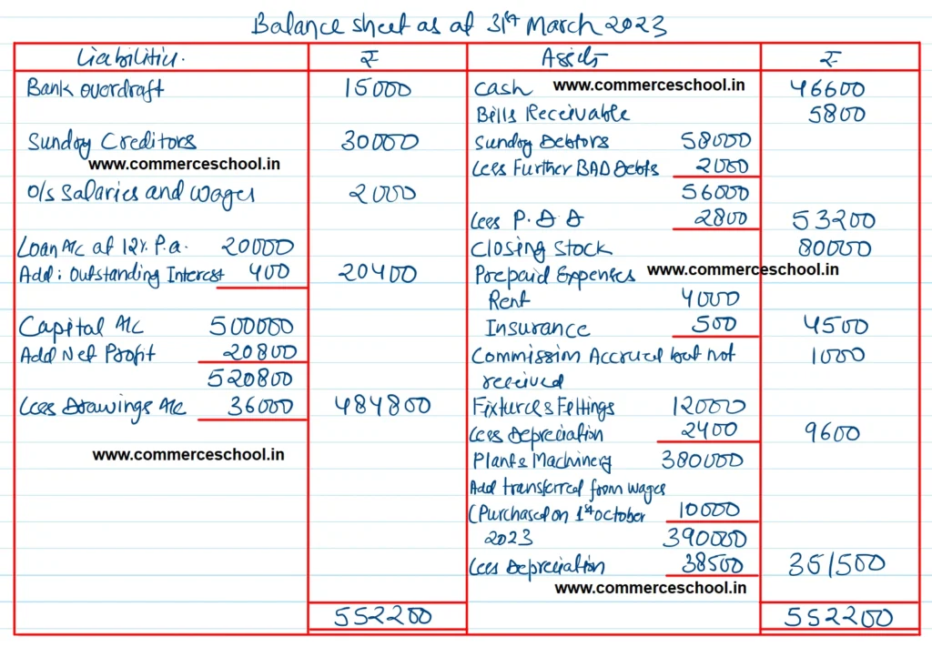 | Loan A/c (Cr.) at 12% p.a. | 20,000 | Bank Overdraft | 15,000 |
