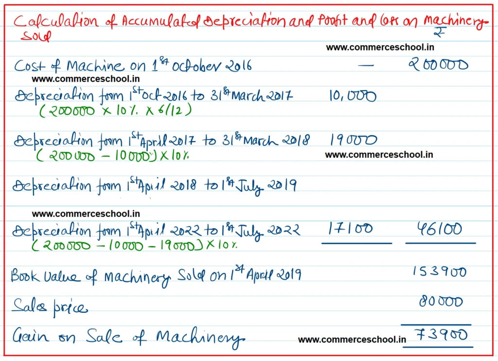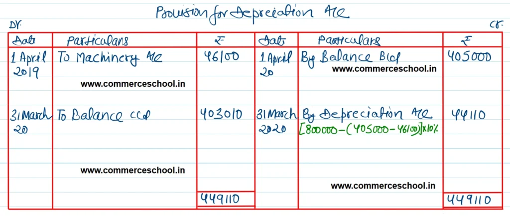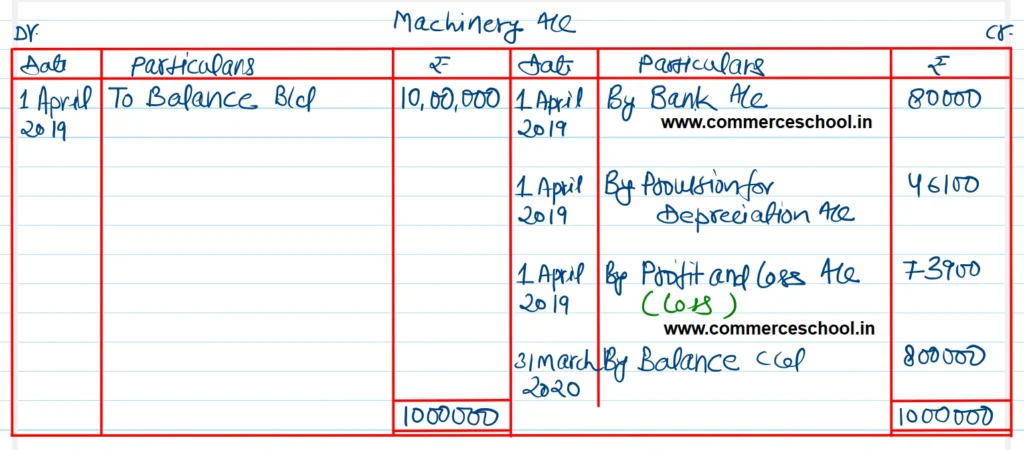 [Ans. Balance of Machinery A/c on 31st March, 2020 ₹ 8,00,000. Balance of Provision for Depreciation A/c on 31st March, 2020 ₹ 4,03,010; Loss on sale of Machinery ₹ 73,900.]