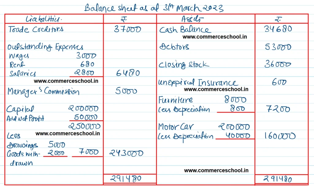 [Ans. G.P ₹ 1,55,100; N.P. ₹ 50,000; Balance Sheet Total ₹ 2,91,480.]