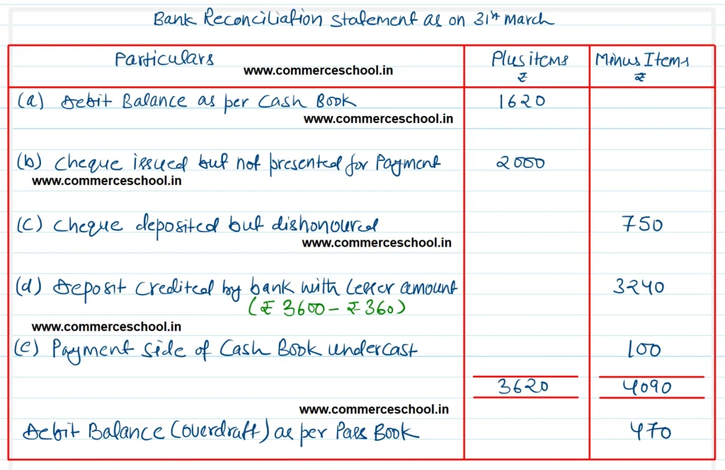 (a) Debit balance as per Cash Book ₹ 1,620.