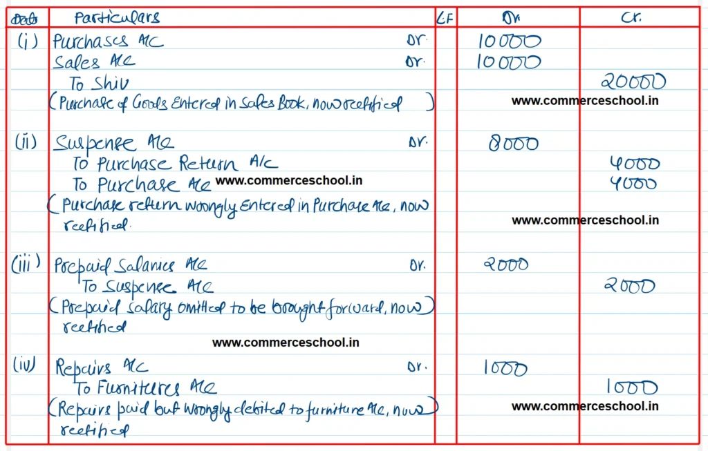 (iii) Dr. Prepaid Salaries A/c; Cr. Suspenses A/c