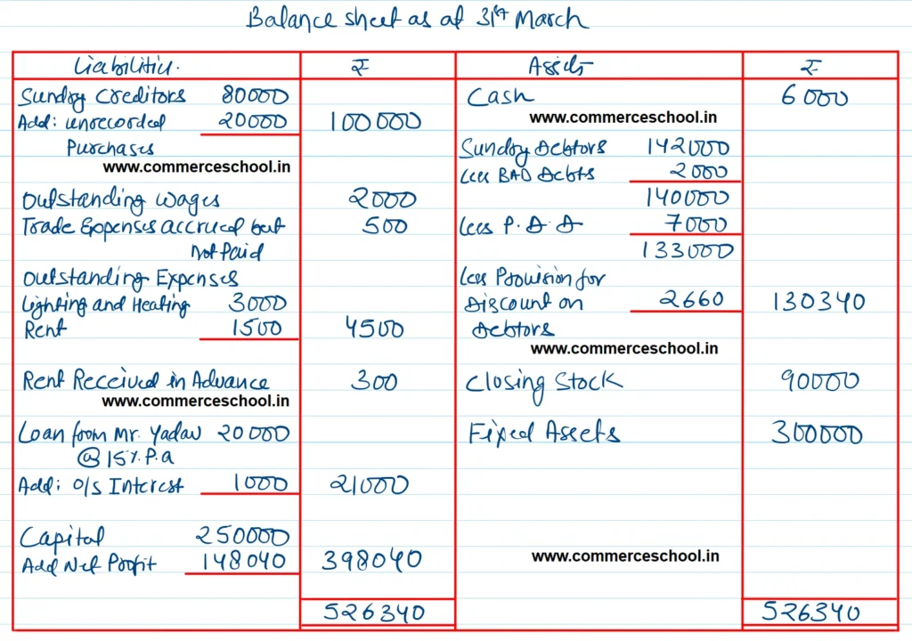 | Wages | 22,000 | Loan from Mr. Yadav @ 15% p.a. | 20,000 |