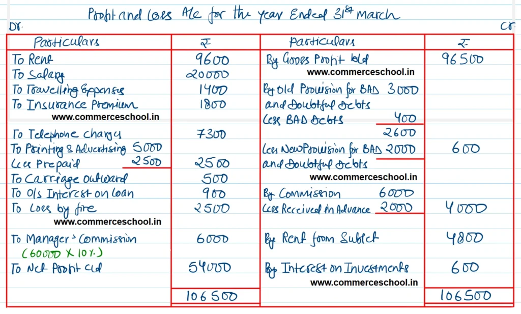 | Proivision for Doubtful Debts | 3,000 | Carriage Inward | 3,500 |