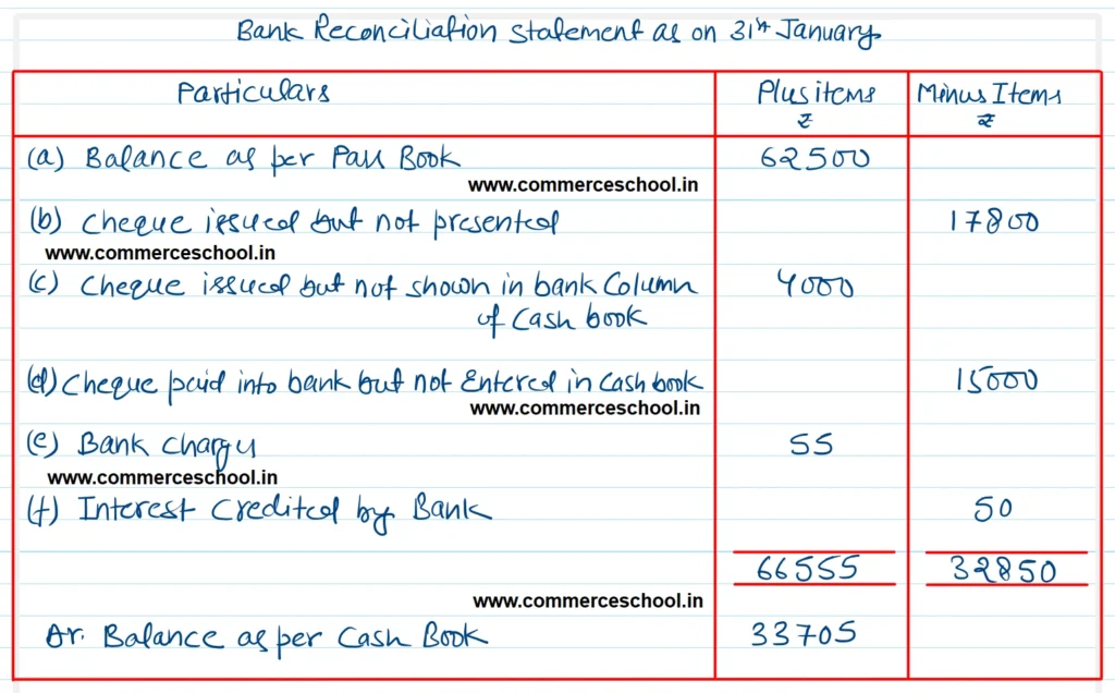 (a) Balance as per Pass Book as on 31st Janauary was ₹ 62,500.