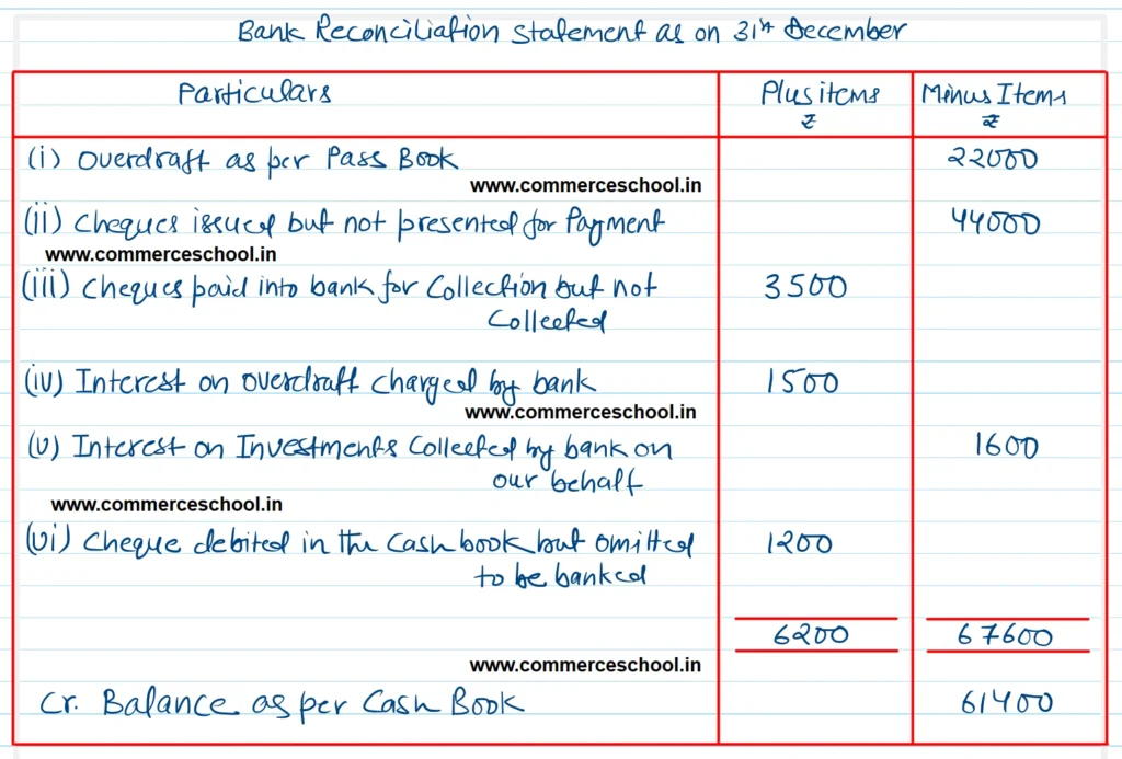 (ii) On 28th Dec., cheques had been issued for ₹ 50,000 of which cheques worth ₹ 6,000 only had been encashed upto 31st Dec.