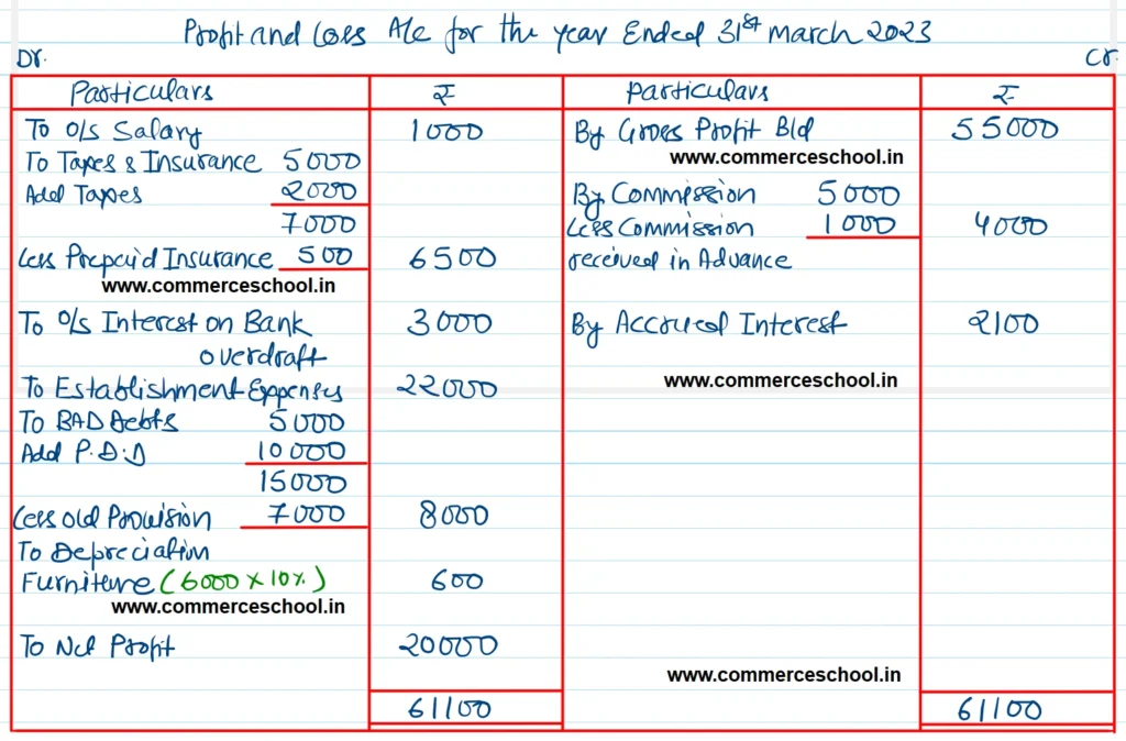 1. Salaries ₹ 1,000 and taxes ₹ 2,000 are outstanding but insurance ₹ 500 is prepaid.