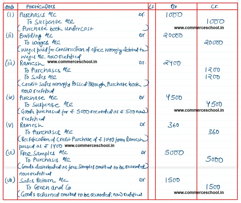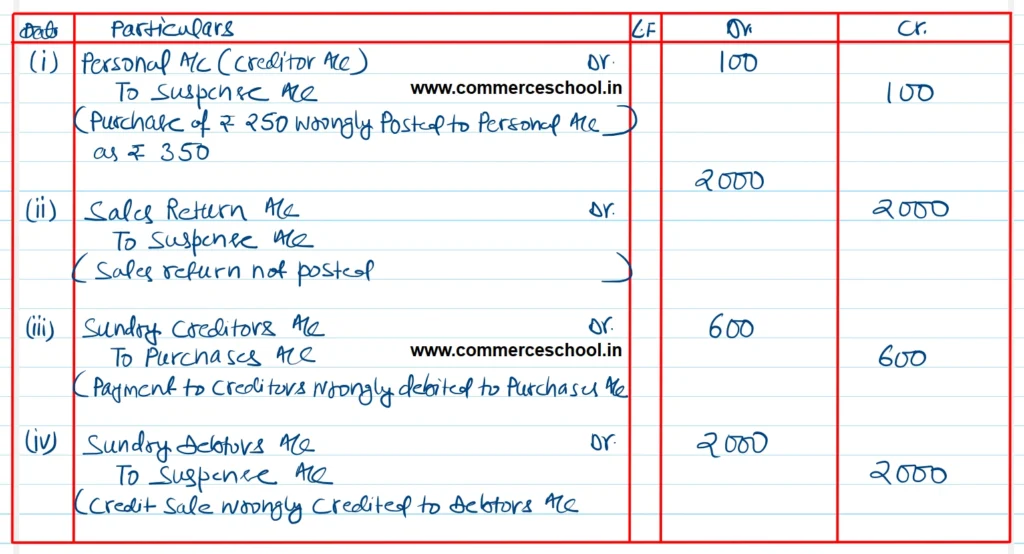 (iv) Dr. Purchases A/c; Cr. Suspense A/c by ₹ 4,500.