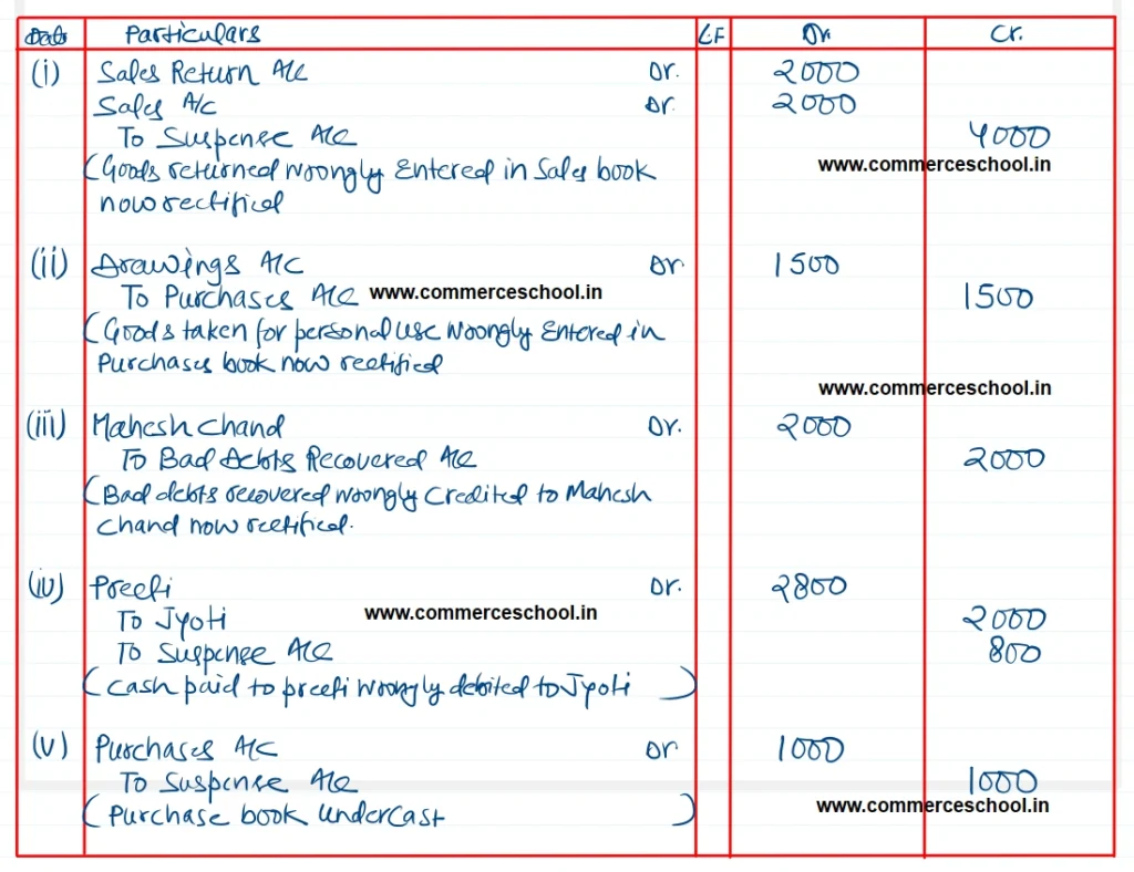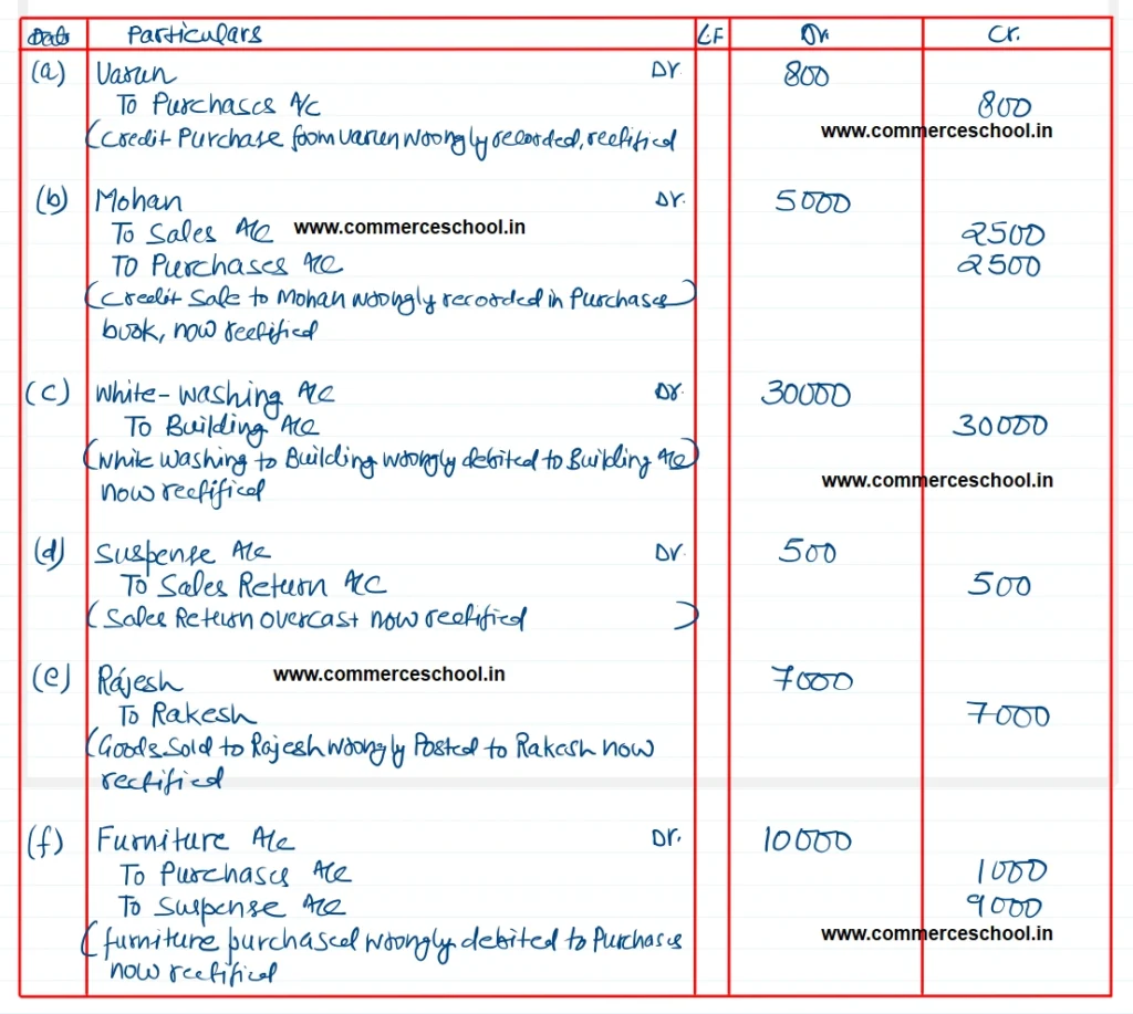 (a) Credit purchase from Varun ₹ 8,000 was recorded as ₹ 8,800.
