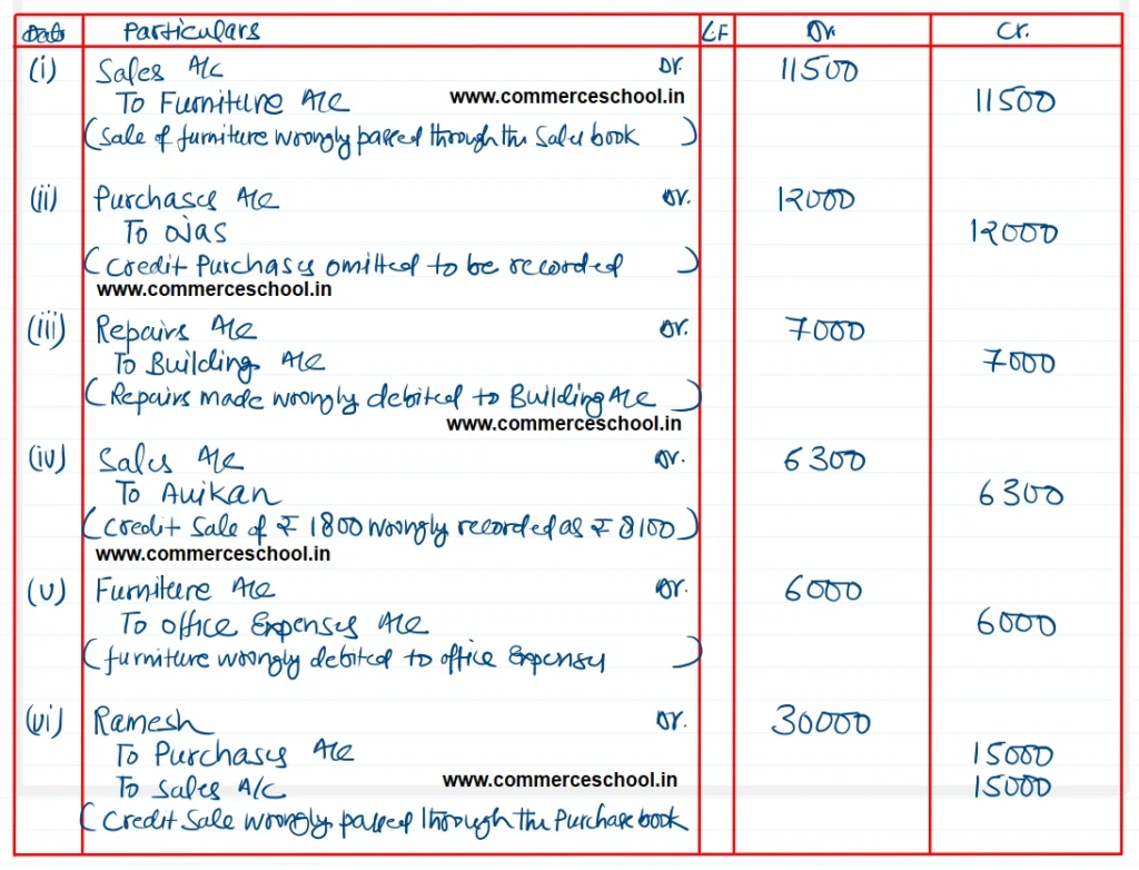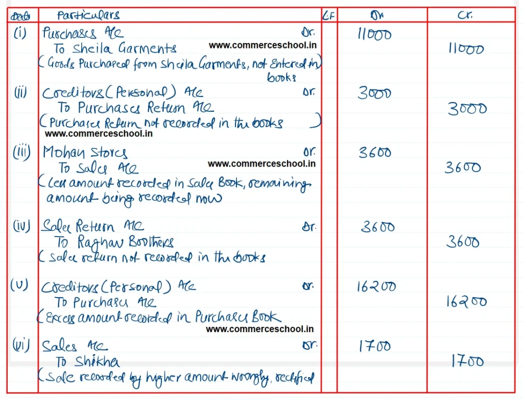 Hint:- In item (vi), entry for sales has been recorded in excess by ₹ 1,700; As such, sales account will be debited and Shikha’s account will be credited.