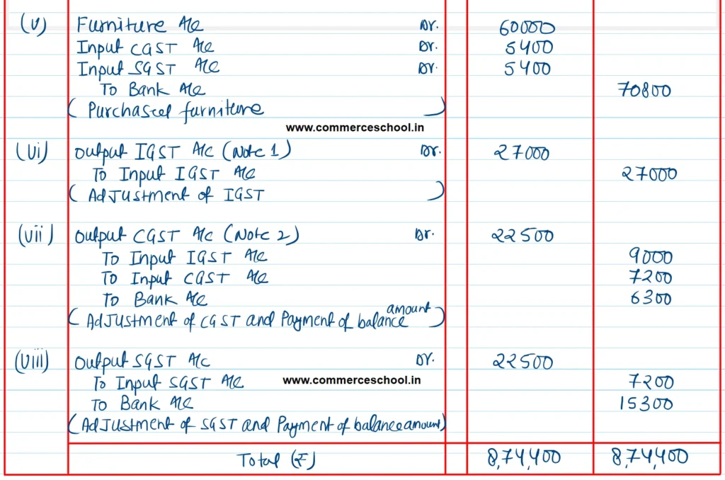 | (v) | Purchased furniture for office for ₹ 60,000 by cheque. |