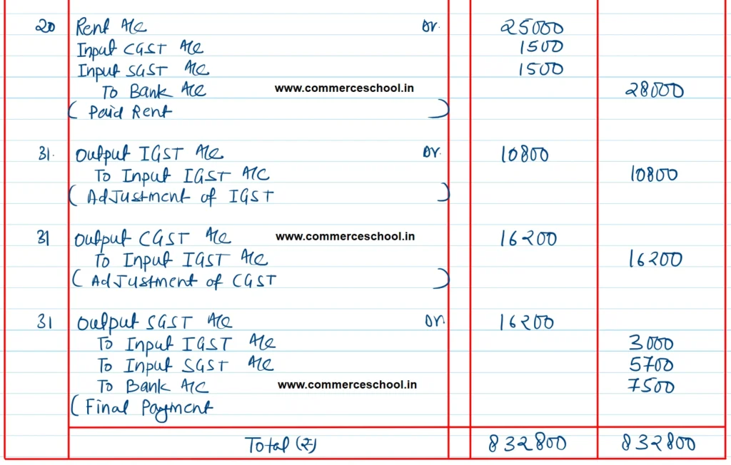 | March 20 | Paid rent ₹ 25,000 by cheque. |