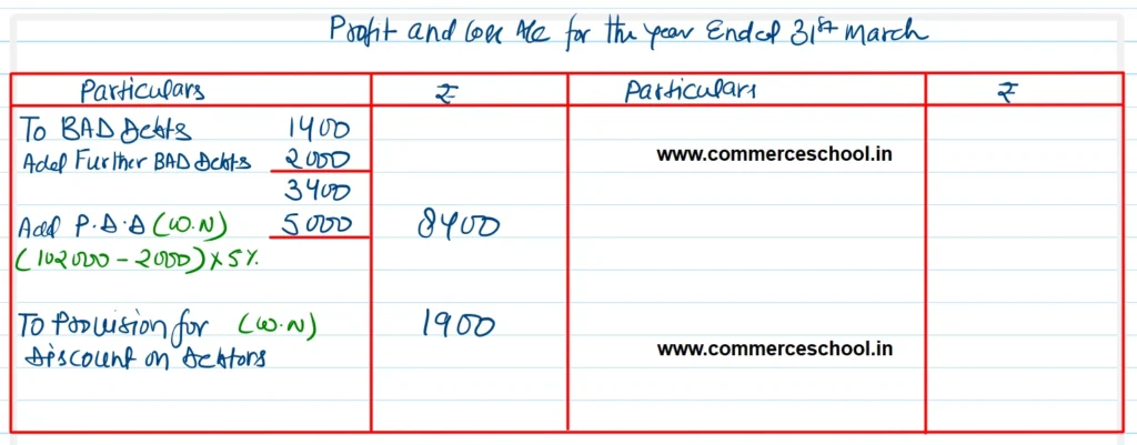 A debtor of ₹ 2,000 could not be recovered. It is decided to maintain Provision for Doubtdul Debtors @ 5% on Debtors and Provision for Discount at @ 2%.
