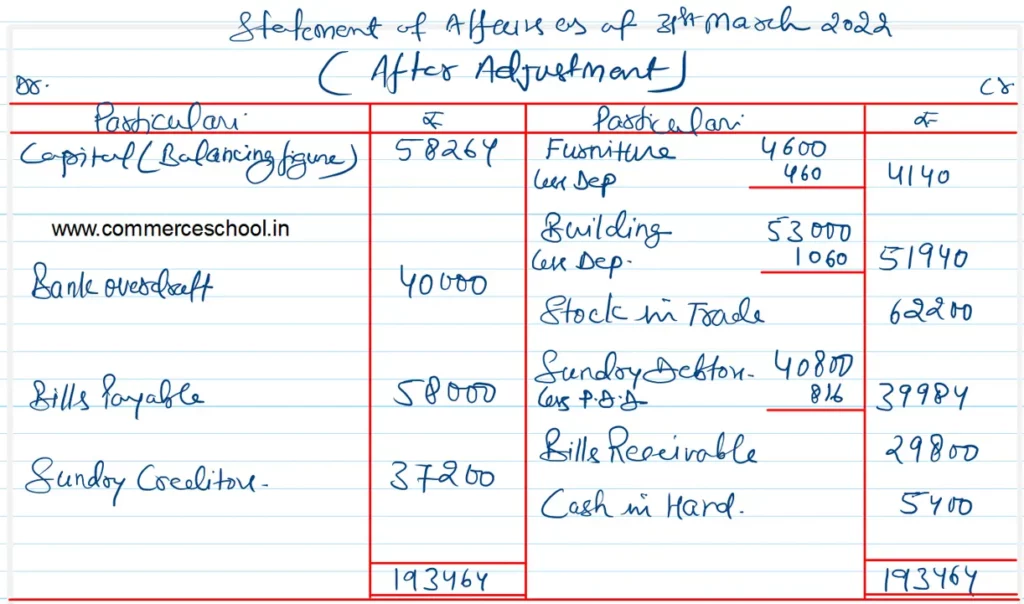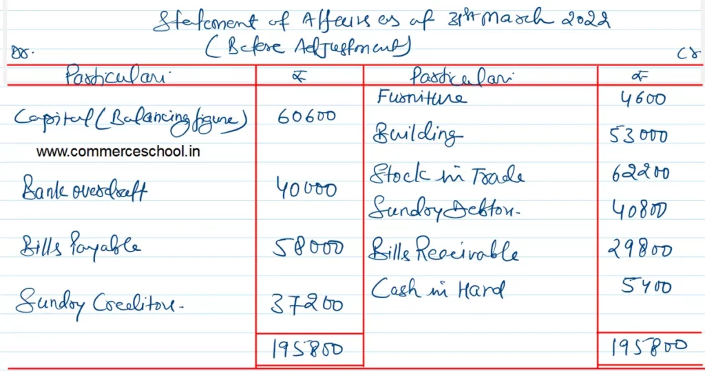 Prepare a Statement of profit or Loss showing Gross Profit and Net Profit for the year ended 31st March, 2022 and adjusted Statement of Affairs as at that date.