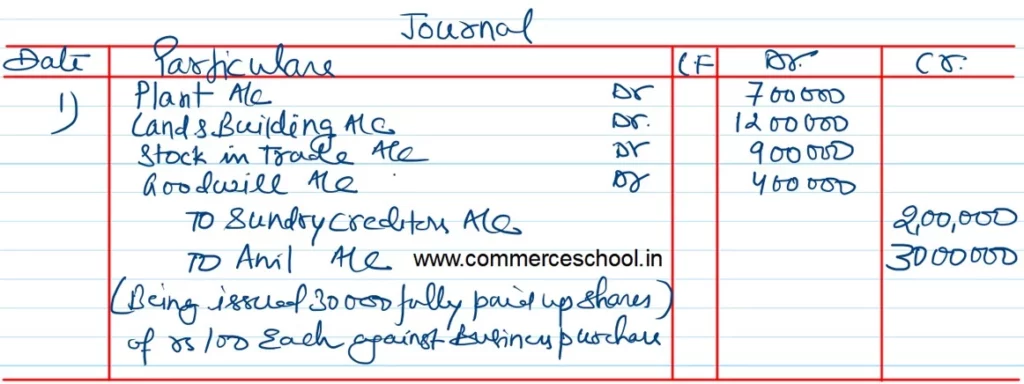 Sunshine Ltd. issued 30,000 fully paid-up shares of ₹ 100 each for purchase of the following assets and liabilities from Anil: